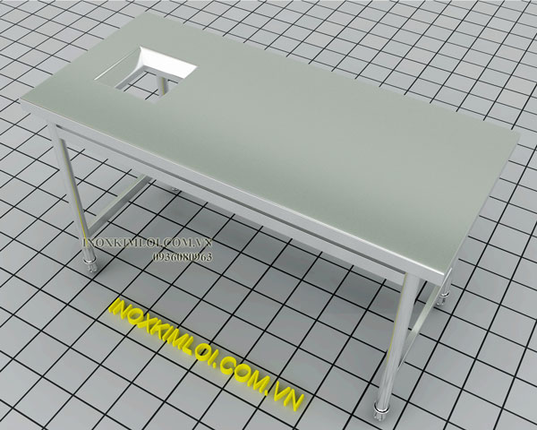 Bàn bếp inox công nghiệp phẳng có một lỗ xả rác : Dòng bàn bếp có mặt phẳng lớn thiết kế có thêm phần hố xả rác. Đây là kiểu bàn thích hợp cho những căn bếp công nghiệp lớn như các quán ăn, nhà hàng hay nơi chế biến lượng thức ăn nhiều như công ty, bệnh viện. Bàn bếp này đáp ứng tốt chô nhu cầu sử dụng nhiều trong công đoạn rửa và sơ chế thực phẩm