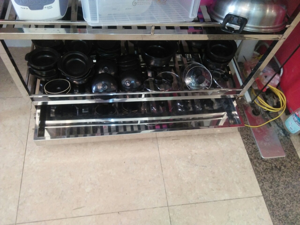 - Thanh nan bằng hộp inox 10x20mm - Có khay hứng nước hợp VSAT thực phẩm. - Có móc treo tiện dụng tại tầng 3 &4 |