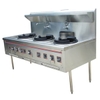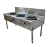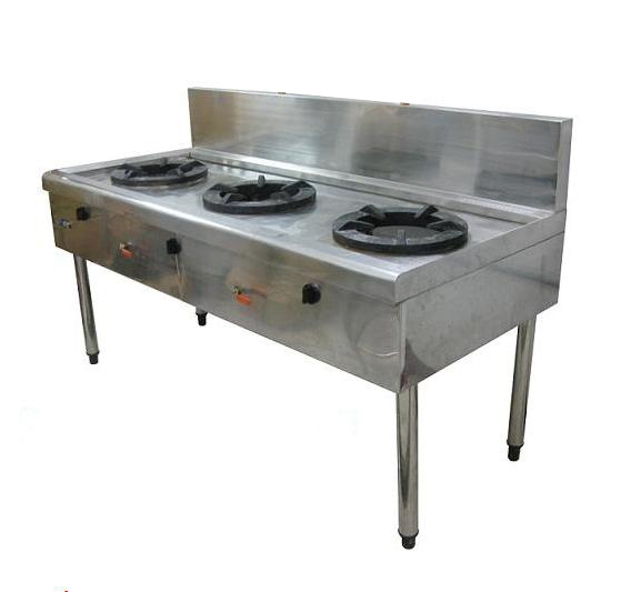 Bếp Á 3 họng, Mặt bếp làm bằng Inox 201 hoặc 304 dày 1-1,2mm có xương tăng cứng khung bếp làm bằng Inox hộp. Cắt gấp bằng máy thủy lực. Hàn bằng công nghệ khí Agon chống Oxy hóa. Có vòi cấp nước, có xả tràn làm mát bề mặt bếp.